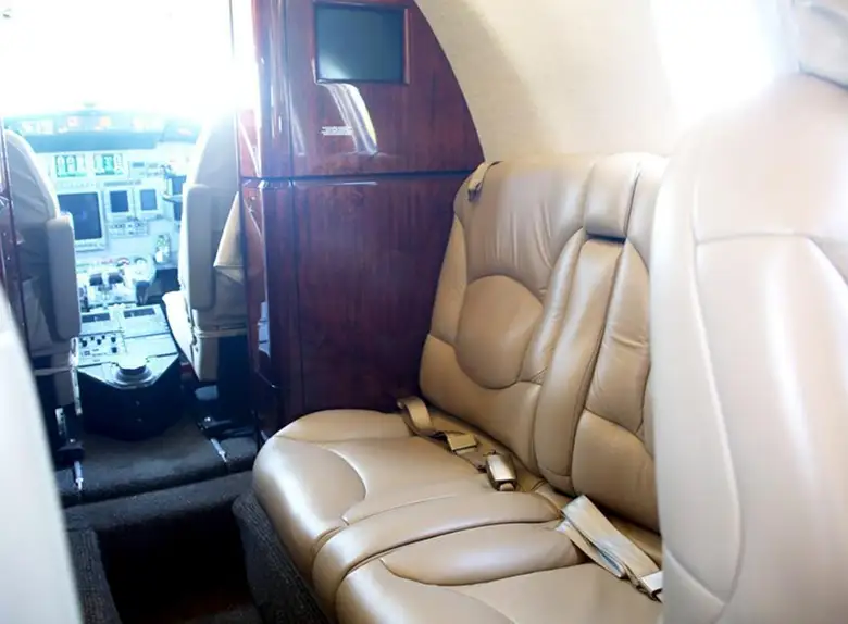 Citation Excel N47HF accommodates up to 8 passengers. The baggage compartment volume of 2.24 m³ can hold up to 6 large suitcases . The maximum flight range reaches 3499 km, depending on payload and weather conditions.