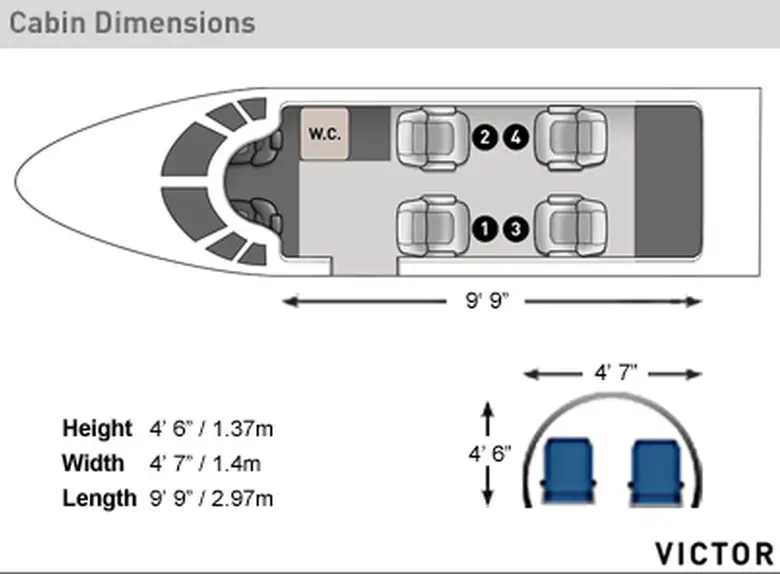 Citation Mustang G-MICE accommodates up to 4 passengers. The baggage compartment volume of 0.7 m³ can hold up to 2 large suitcases . The maximum flight range reaches 2161 km, depending on payload and weather conditions.