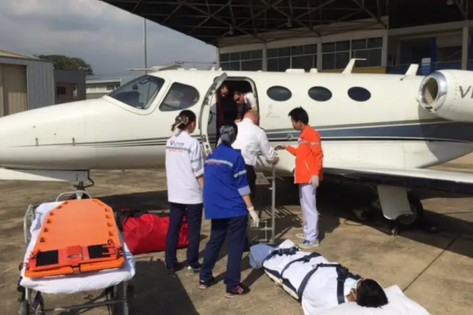 Available onboard amenities include Adult critical care , Medical ramp .