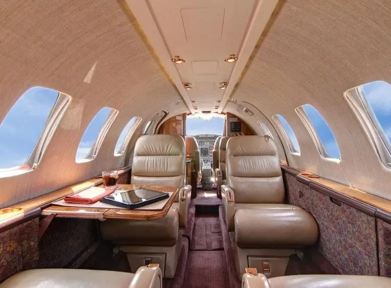 Citation Ultra N145KK accommodates up to 8 passengers. The baggage compartment volume of 1.9 m³ can hold up to 5 large suitcases . The maximum flight range reaches 3630 km, depending on payload and weather conditions.