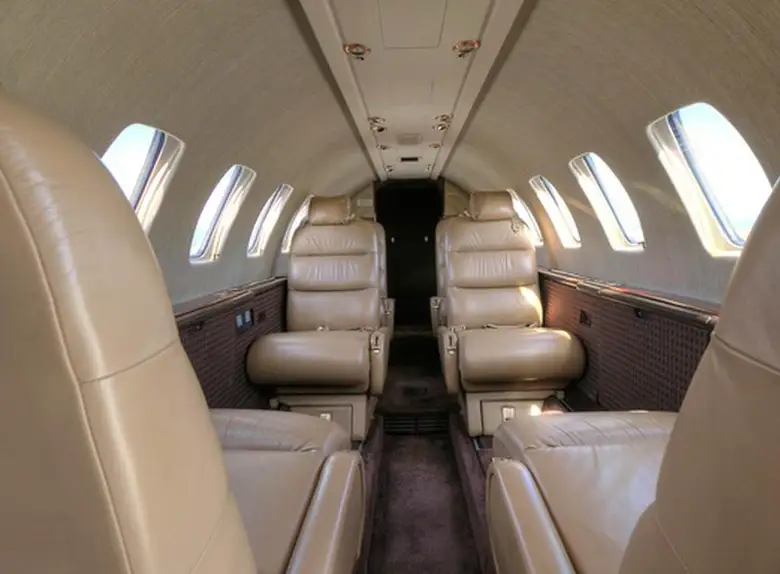 Citation Ultra N496JH accommodates up to 7 passengers. The baggage compartment volume of 1.9 m³ can hold up to 5 large suitcases . The maximum flight range reaches 3630 km, depending on payload and weather conditions.