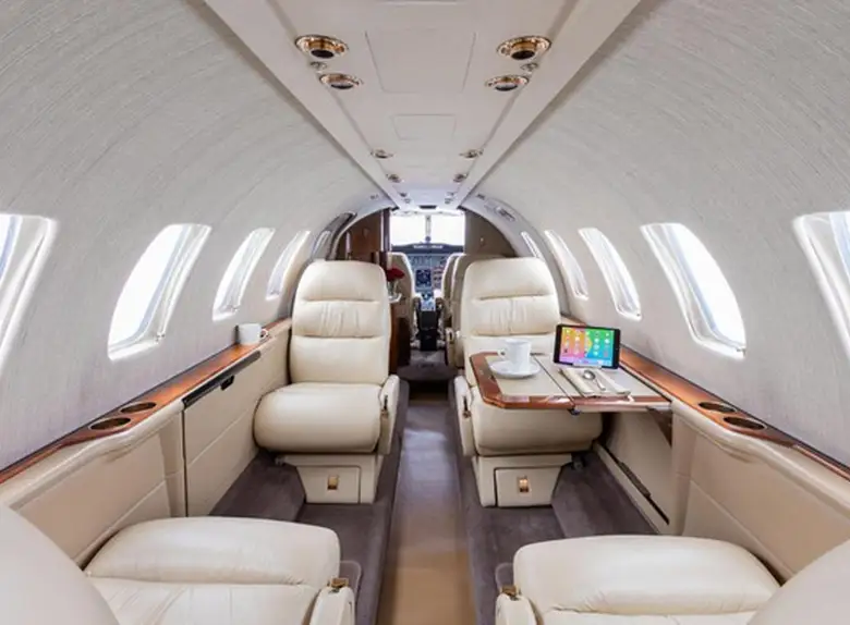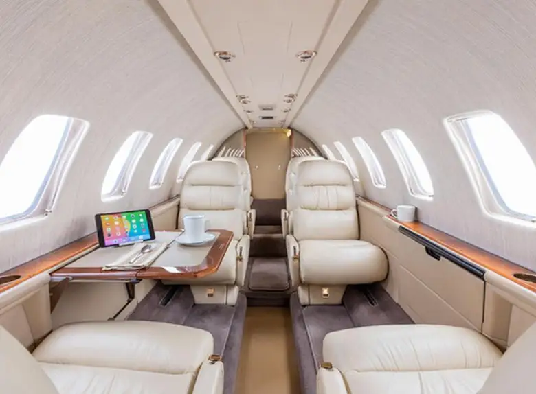 Citation Ultra N579BJ accommodates up to 7 passengers. The baggage compartment volume of 1.9 m³ can hold up to 5 large suitcases . The maximum flight range reaches 3630 km, depending on payload and weather conditions.