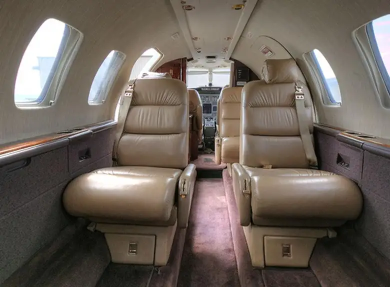 Citation Ultra N80JH accommodates up to 7 passengers. The baggage compartment volume of 1.9 m³ can hold up to 5 large suitcases . The maximum flight range reaches 3630 km, depending on payload and weather conditions.