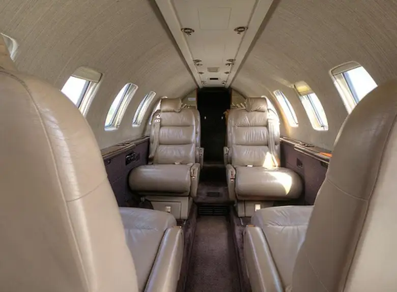 Citation Ultra N93HA accommodates up to 7 passengers. The baggage compartment volume of 1.9 m³ can hold up to 5 large suitcases . The maximum flight range reaches 3630 km, depending on payload and weather conditions.