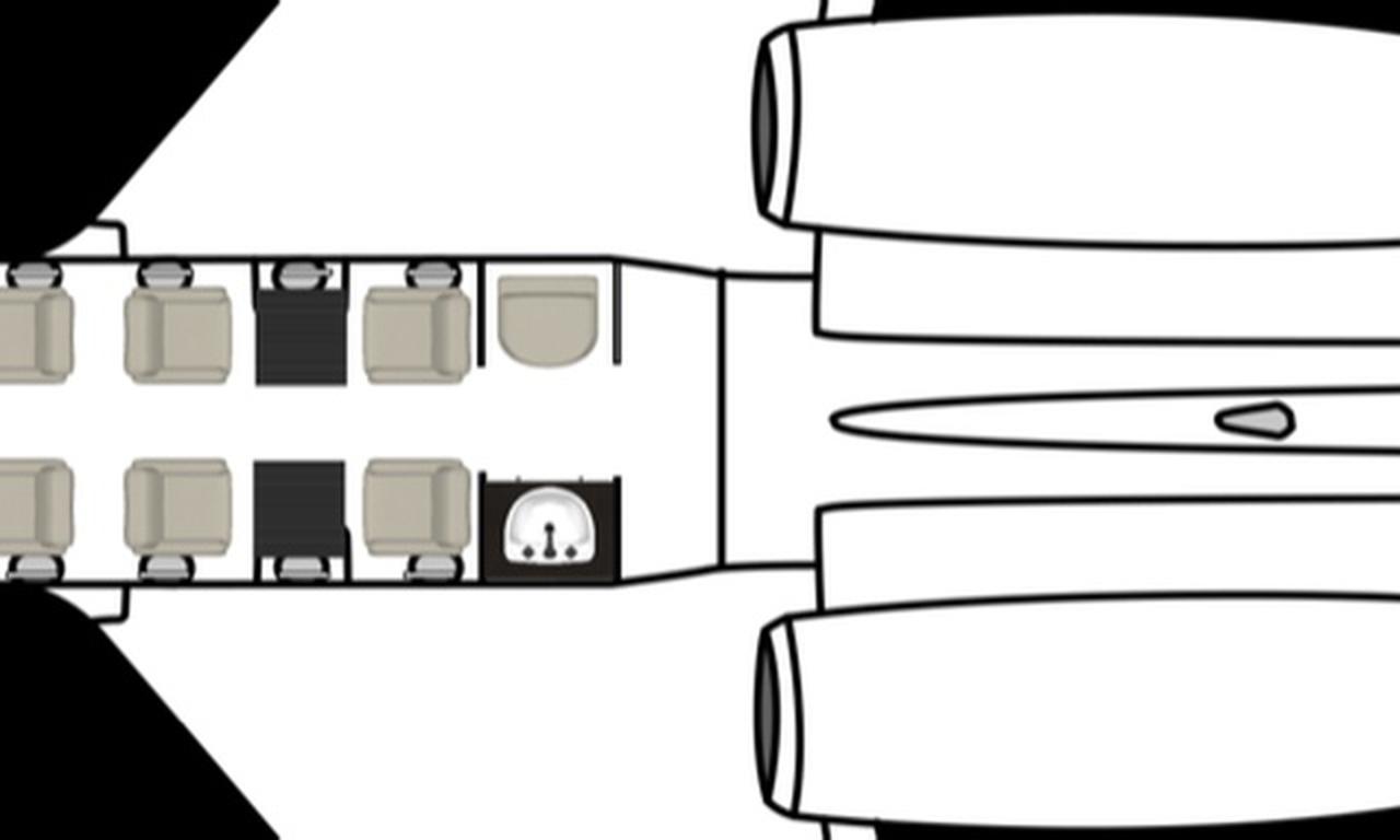 Citation X OE-HUB accommodates up to 8 passengers. The baggage compartment volume of 2.93 m³ can hold up to 8 large suitcases . The maximum flight range reaches 5408 km, depending on payload and weather conditions.