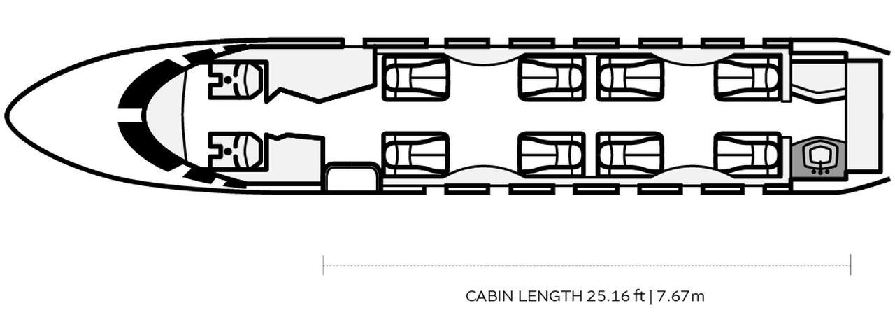 Citation XLS+ D-BUZZ accommodates up to 8 passengers. The baggage compartment volume of 2.55 m³ can hold up to 7 large suitcases . The maximum flight range reaches 3440 km, depending on payload and weather conditions.