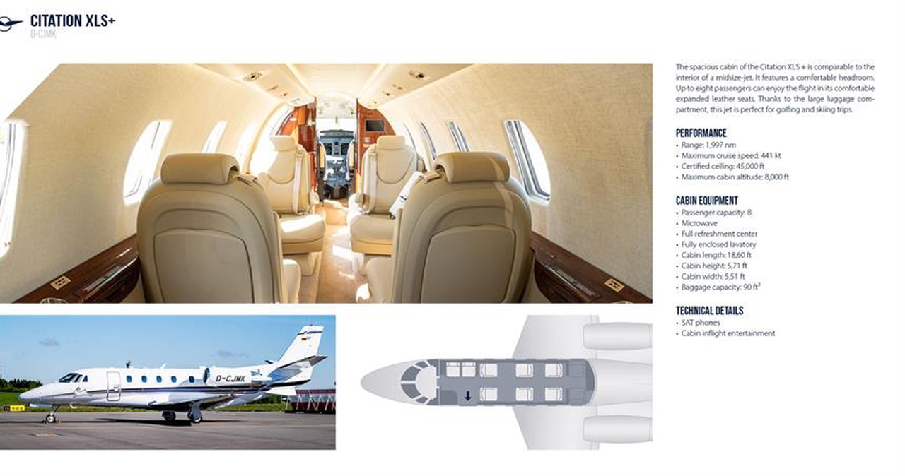 Cessna Aircraft Citation XLS+ (D-CJMK, Vista) Private Jet Charter — Price, Specs & Worldwide Flights