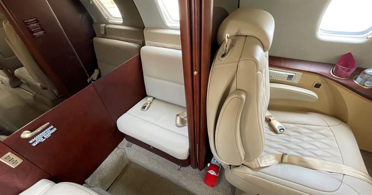 Available onboard amenities include Certified jump seat , Enclosed lavatory , Flight attendant available , Partial galley , Pets allowed , Power outlet .
