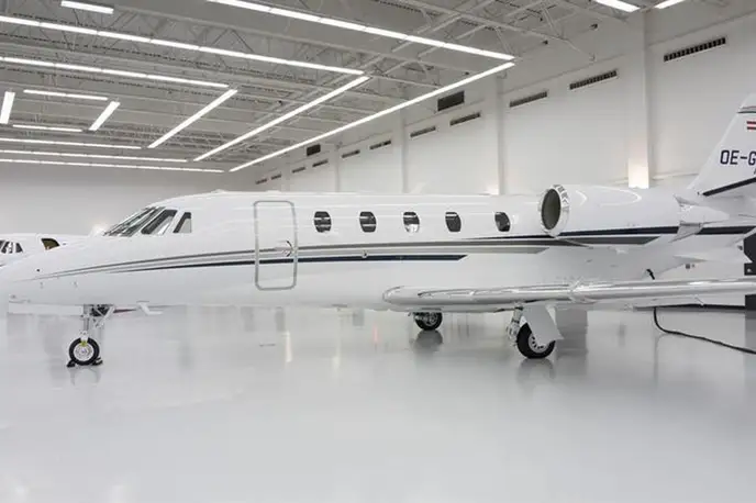 Cessna Aircraft Citation XLS+ OE-GTE (Porsche Air Service GmbH), Salzburg Airport is premium Super Light Jet jet for 8 passengers with a range of 3440 km. verified aircraft, transparent pricing, real photos and signature JETVIP ratings. Model ratings: Reliability — 84/100, Comfort — 82/100, Popularity — 4.8/5.