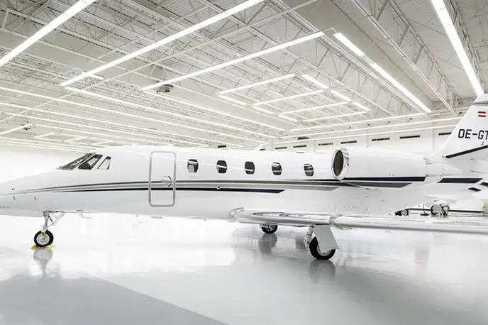 Cessna Aircraft Citation XLS+ OE-GTS (Porsche Air Service GmbH), Salzburg Airport is premium Super Light Jet jet for 8 passengers with a range of 3440 km. verified aircraft, transparent pricing, real photos and signature JETVIP ratings. Model ratings: Reliability — 84/100, Comfort — 82/100, Popularity — 4.8/5.