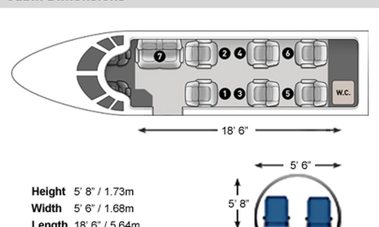 Citation XLS+ OE-GWS accommodates up to 8 passengers. The baggage compartment volume of 2.55 m³ can hold up to 7 large suitcases . The maximum flight range reaches 3440 km, depending on payload and weather conditions.
