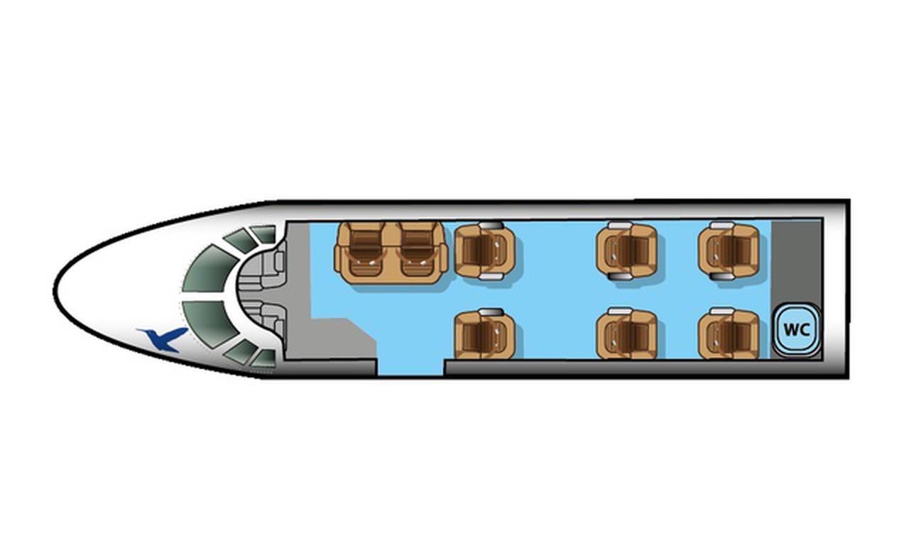 Citation XLS+ SE-RIL accommodates up to 9 passengers. The baggage compartment volume of 2.55 m³ can hold up to 7 large suitcases . The maximum flight range reaches 3440 km, depending on payload and weather conditions.