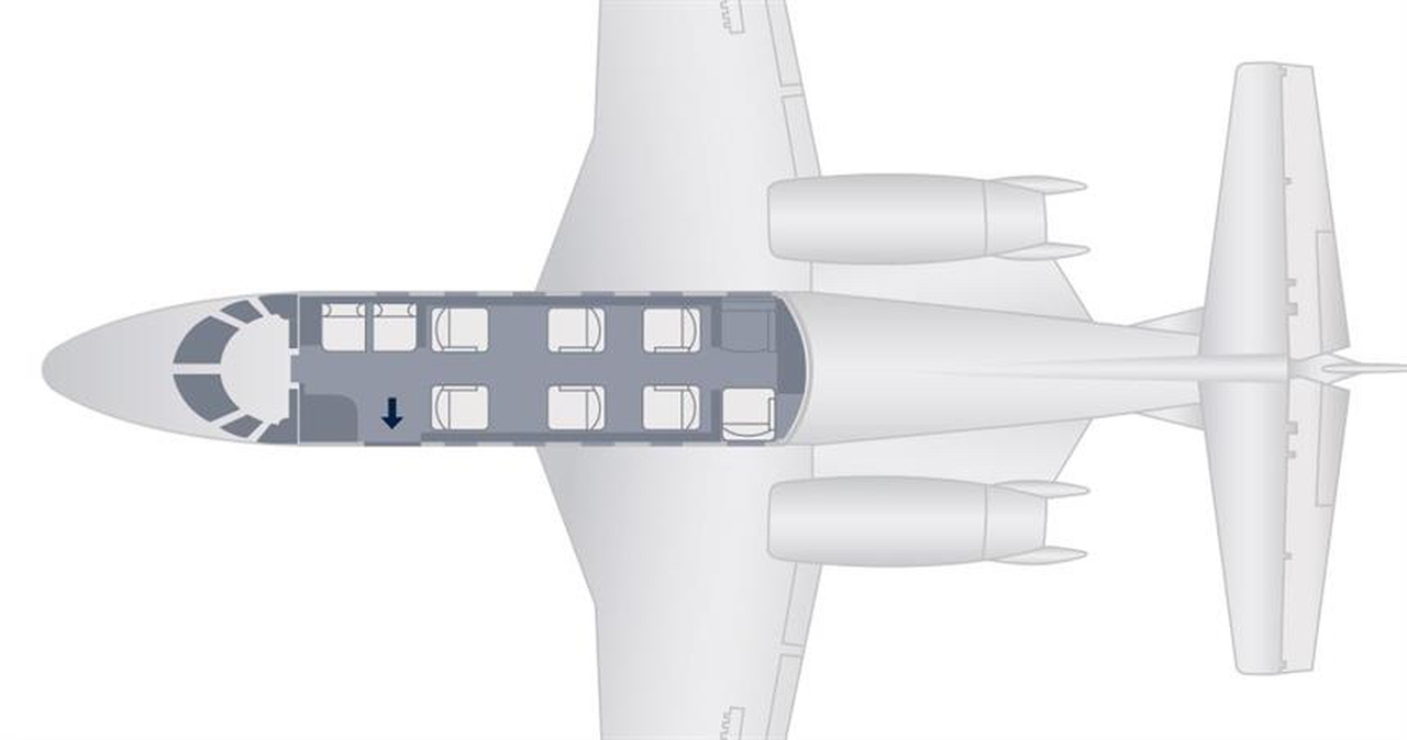 Citation XLS D-CPLN accommodates up to 8 passengers. The baggage compartment volume of 2.55 m³ can hold up to 7 large suitcases . The maximum flight range reaches 3431 km, depending on payload and weather conditions.