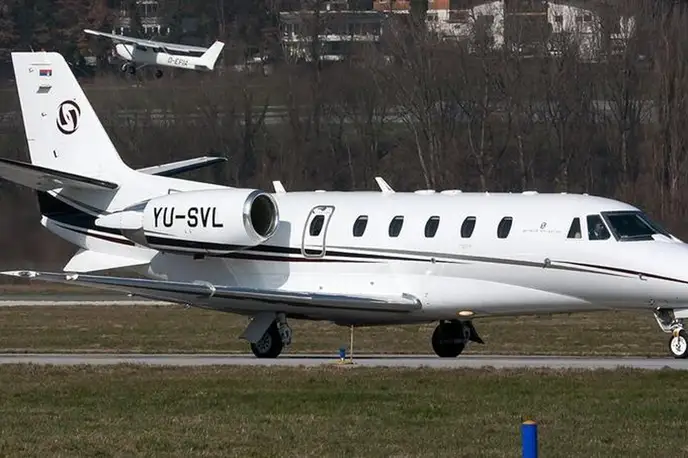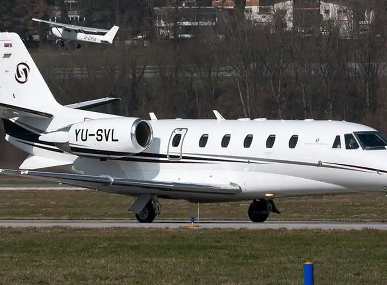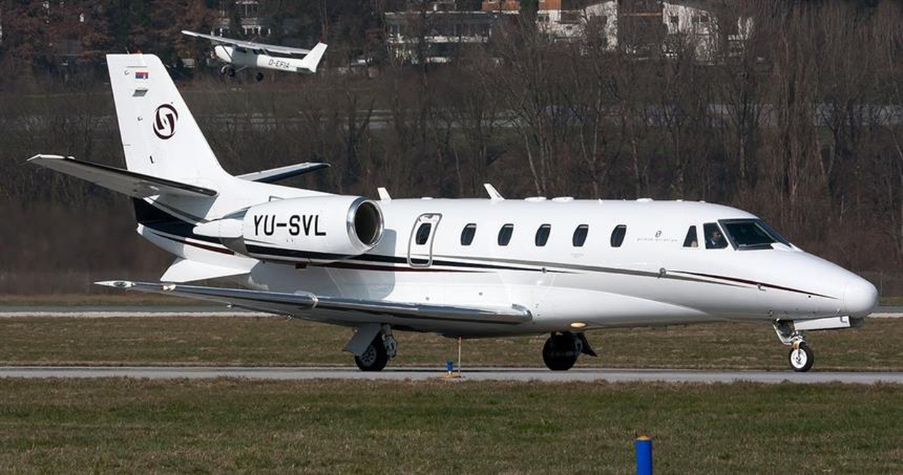 Cessna Aircraft Citation XLS YU-SVL (Prince Aviation), Belgrade Nikola Tesla Airport is premium Super Light Jet jet for 7 passengers with a range of 3431 km. verified aircraft, transparent pricing, real photos and signature JETVIP ratings. Model ratings: Reliability — 80/100, Comfort — 82/100, Popularity — 4.8/5.