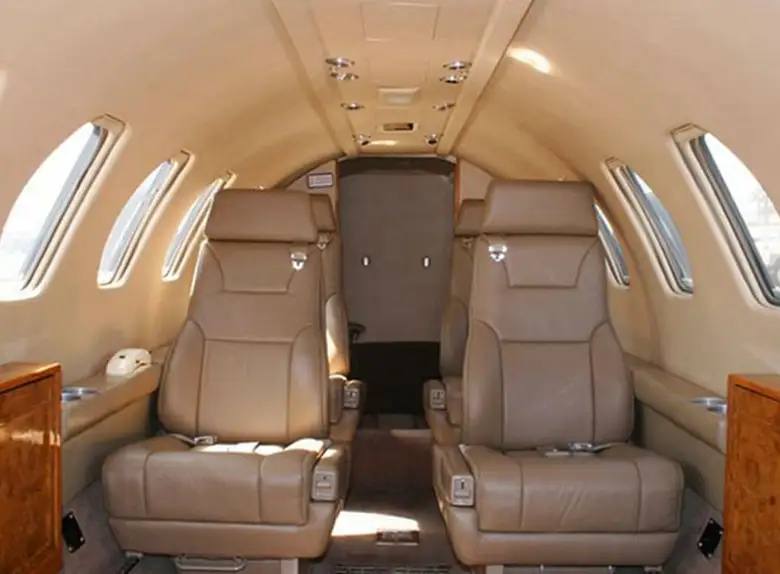 Cessna Aircraft Citation V N54DD (Chrysler Aviation, Inc) is premium Super Light Jet jet with a range of 3236 km. JETVIP offers charter from 4000 €: verified aircraft, transparent pricing, real photos and signature JETVIP ratings. Model ratings: Reliability — 71/100, Comfort — 74/100, Popularity — 3.4/5.