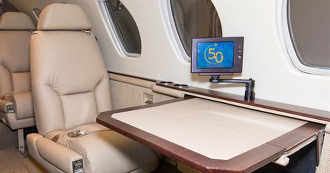 Available onboard amenities include AirShow , Coffee pot , DVD player , Enclosed lavatory , Freon Air conditioning , Lavatory , Leather seats , Pets allowed , Video monitors .