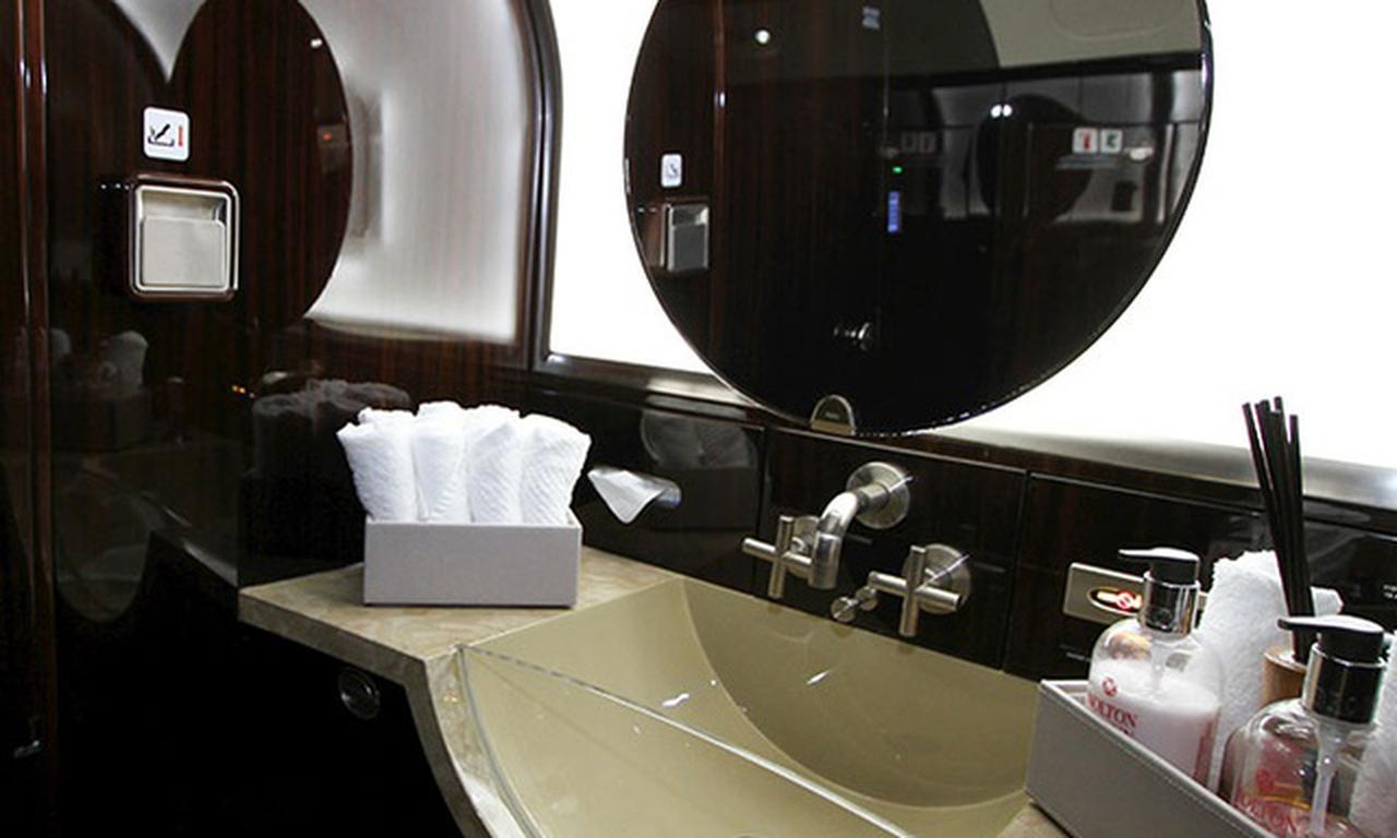 Available onboard amenities include 110V Outlet , Cabin crew , Enclosed lavatory , Espresso machine , Flight attendant required , Hot meal , Ice bin , Lavatory , Microwave oven , Pets allowed .