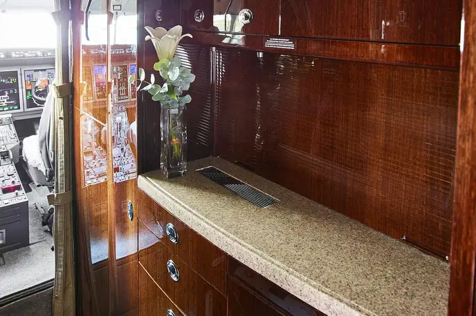Available onboard amenities include Entertainment system , Hot meal , Lavatory , Satellite phone .