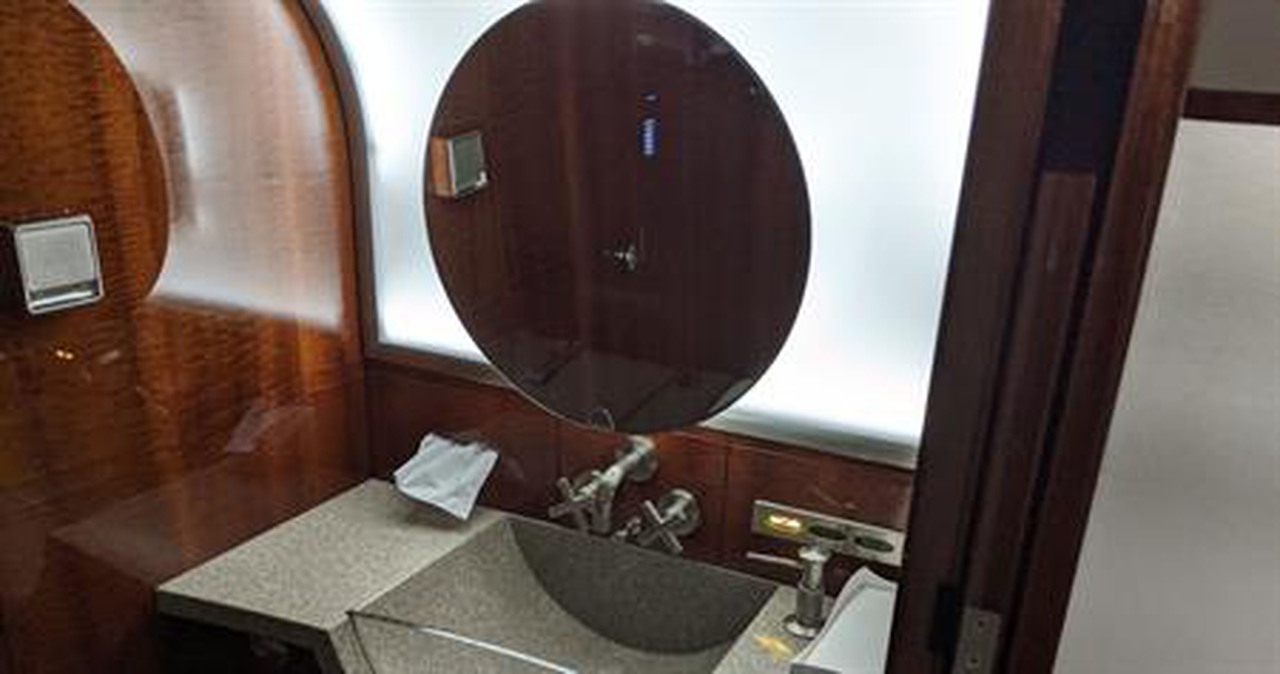 Available onboard amenities include 110V Outlet , CD player , Lavatory , Leather seats , Microwave oven , Power outlet , Satellite phone , Vacuum toilet , Video monitors , WI-FI (Ground based) .