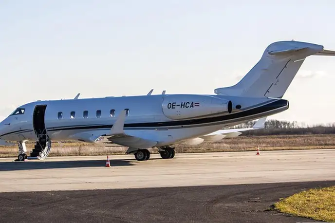 Bombardier Challenger 300 OE-HCA (77 Jets), Vienna International Airport is premium Super Midsize Jet jet for 8 passengers with a range of 5741 km. verified aircraft, transparent pricing, real photos and signature JETVIP ratings. Model ratings: Reliability — 86/100, Comfort — 88/100, Popularity — 4.5/5.