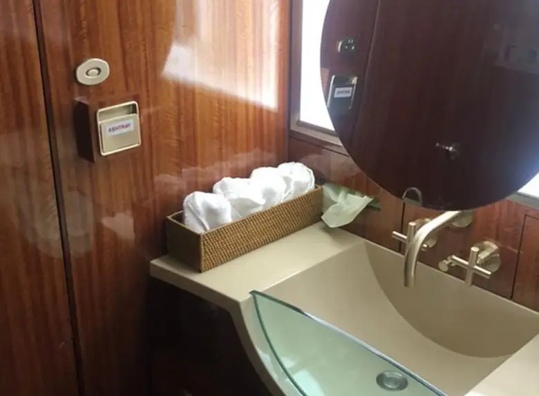 Available onboard amenities include Cabin crew , Entertainment system , Hot meal , Lavatory , Owner's approval required , Pets allowed .