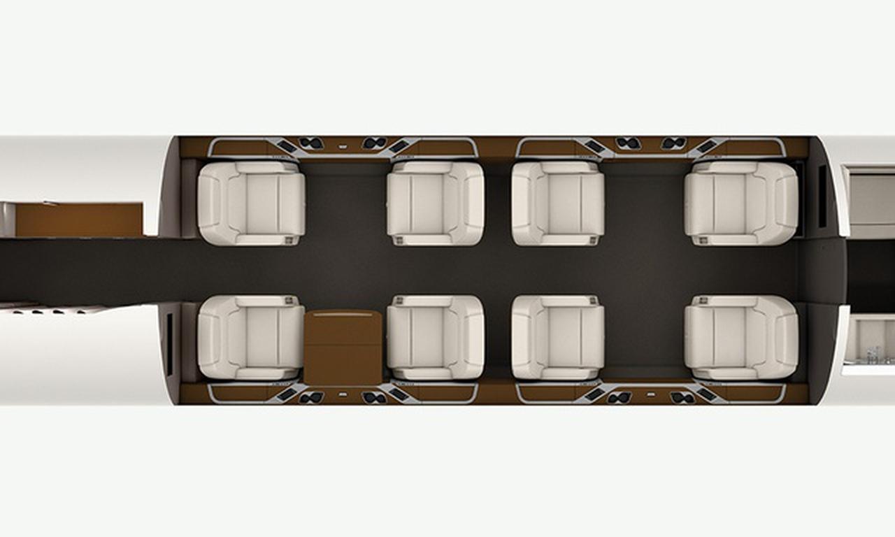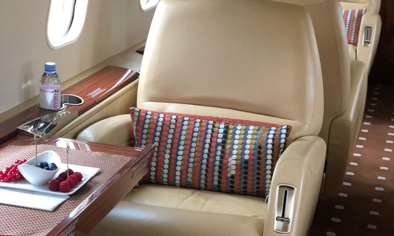 The aircraft was manufactured in 2006. The cabin interior was updated in 2016. The exterior was updated in 2018. Previously, the aircraft operated under registration ex 9H-SMI, D-BSMI, N371TS, D-BTIM, C-FGFB.