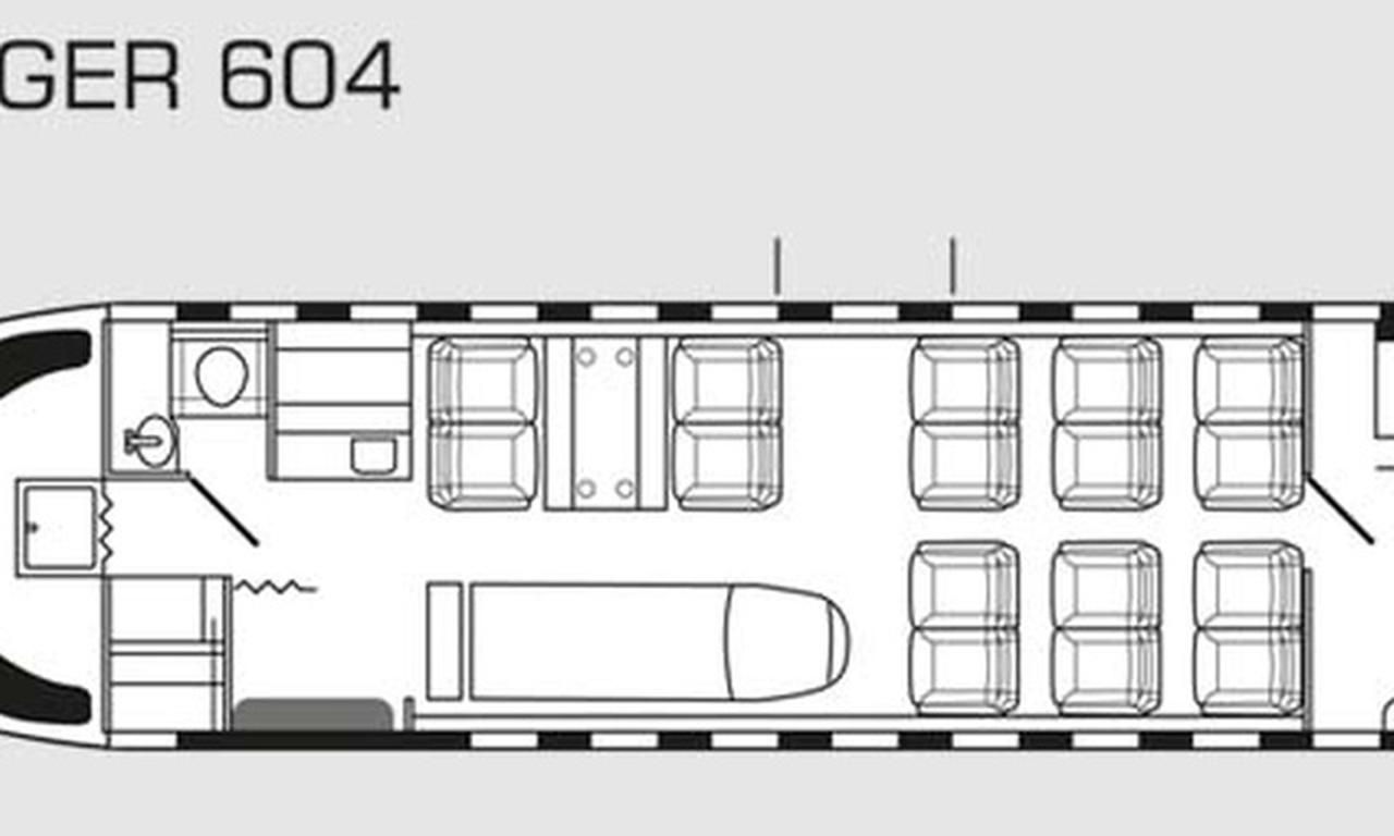 Challenger 604 D-AFAI accommodates up to 18 passengers. The baggage compartment volume of 3.3 m³ can hold up to 9 large suitcases . The maximum flight range reaches 7458 km, depending on payload and weather conditions.