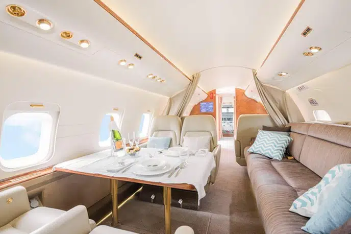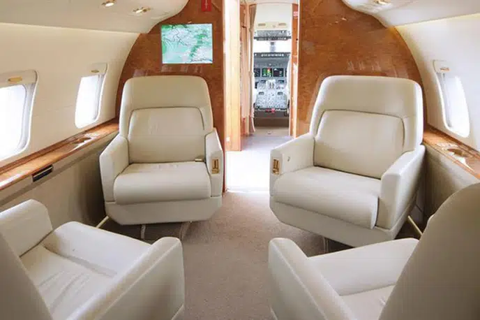 The Challenger 604 equipped with 2 engines of the model CF34-3B, and the approximate kerosene consumption is 360 gallons per hour, which makes it reliable and efficient for business flights.