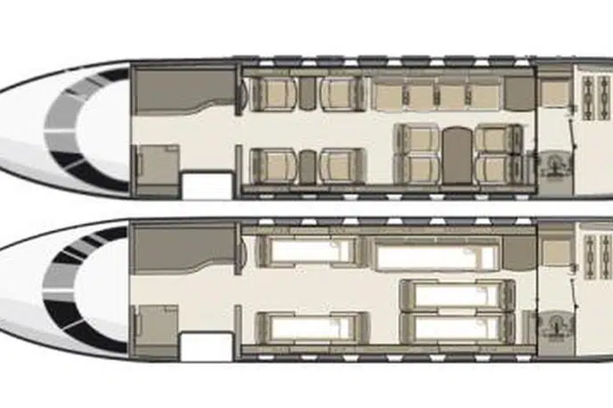 Bombardier Challenger 604 with the aircraft number D-ANTR can comfortably accommodate up to 12 passengers. The luggage compartment has a volume of 3.3 cubic meters, which allows you to place up to 9 of large L-size suitcases. The maximum range is 7458 km and depends on the number of passengers, as well as baggage and weather conditions.