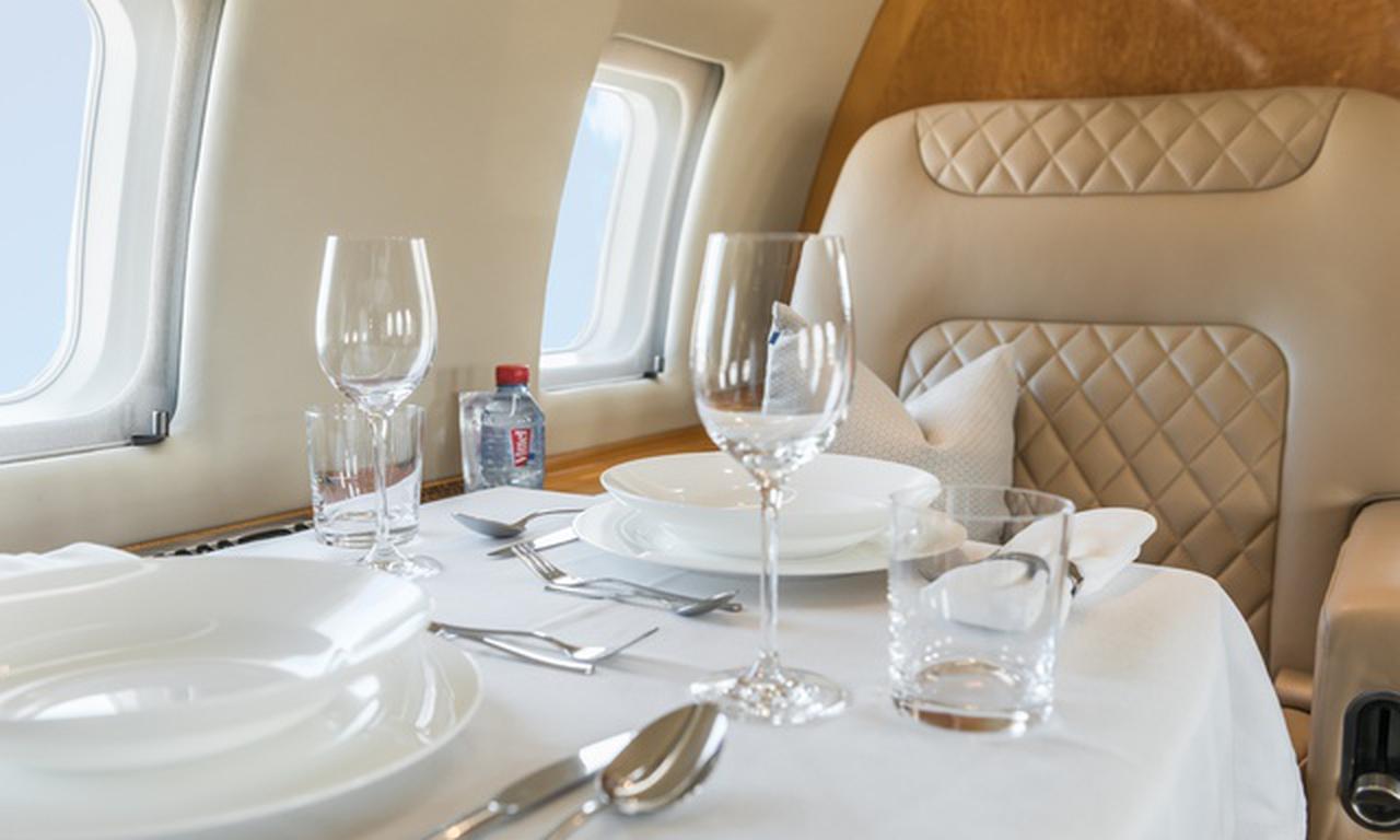 Available onboard amenities include 110V Outlet , Cabin crew , Espresso machine , Flatware , Glassware , Hot meal , Lavatory , Satellite phone , Smoking allowed , VCR , Warming oven .