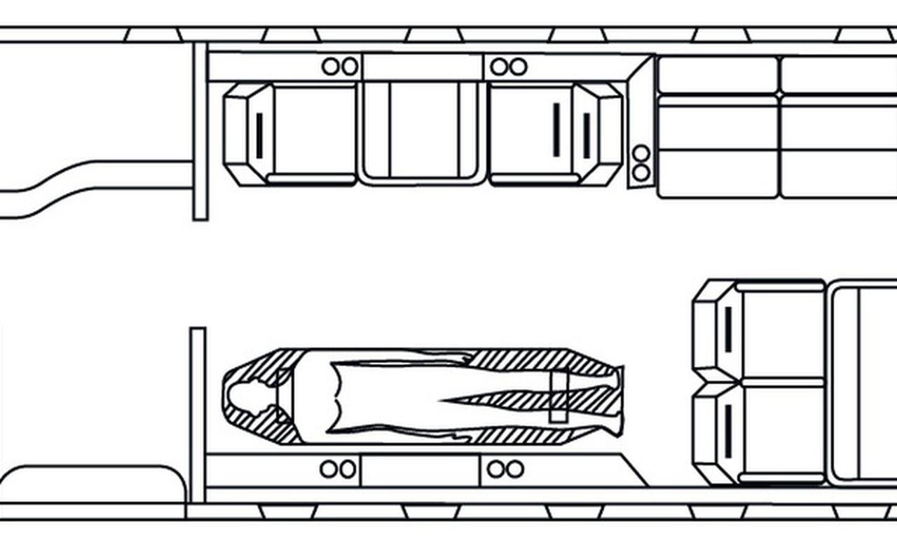 Available onboard amenities include Adult critical care , Cabin crew , Hot meal , Lavatory , Medical ramp , Pediatric critical care , Satellite phone .
