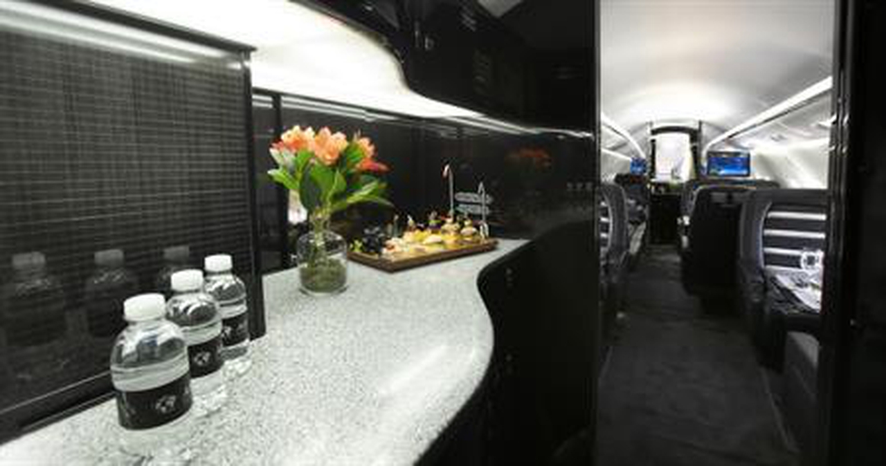 Available onboard amenities include Coffee pot , Enclosed lavatory , Freon Air conditioning , Full galley , Lavatory , Leather seats , Pets allowed .