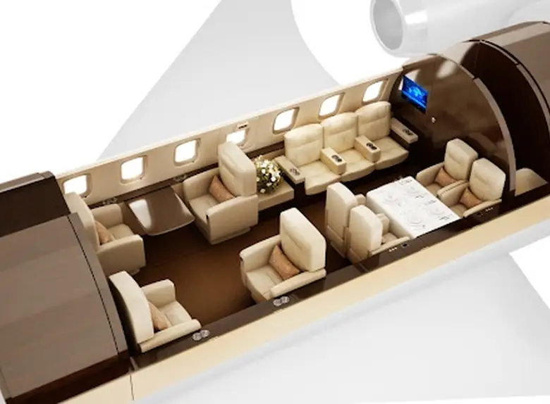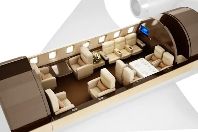 Inside, the Challenger 605 shines with its exceptionally spacious cabin, which represents one of the widest among super-midsize and large-cabin business jets. The cabin architecture eliminates the central aisle hump found in some competing aircraft, creating a true stand-up cabin with flat floor throughout. Large oval windows—reconfigured and enlarged from the previous model—flood the interior with natural light, enhancing the sense of spaciousness while providing spectacular views during flight.