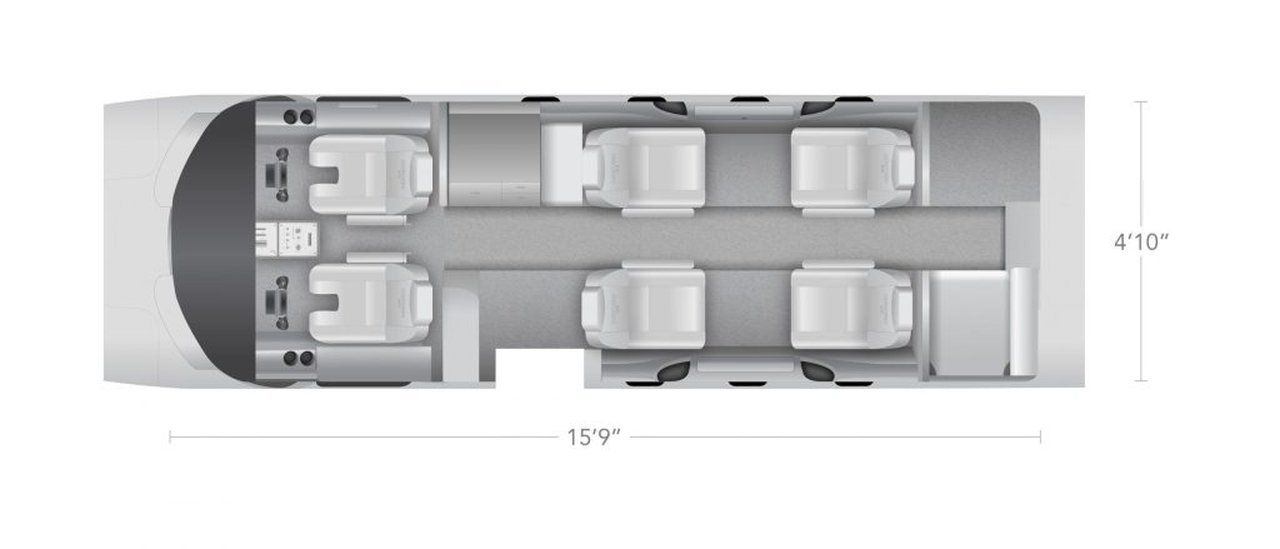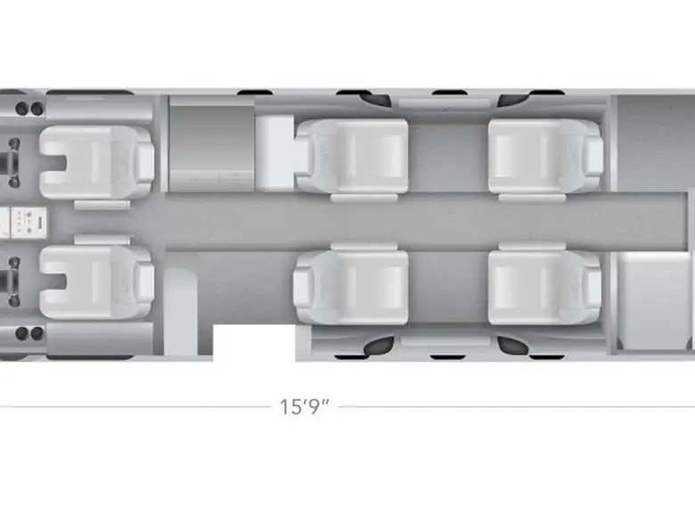 - Full-service lavatory at the rear of the aircraft