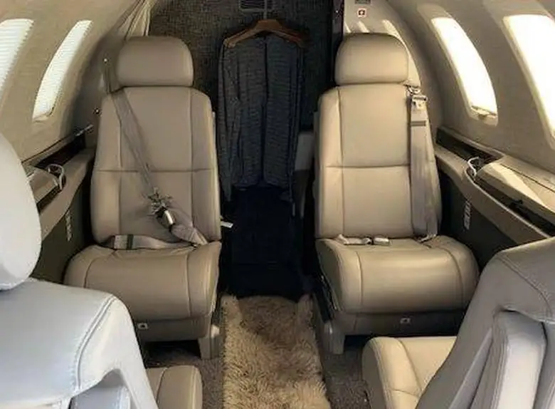 Citation M2 N307JT accommodates up to 7 passengers. The baggage compartment volume of 1.8 m³ can hold up to 5 large suitcases . The maximum flight range reaches 2871 km, depending on payload and weather conditions.