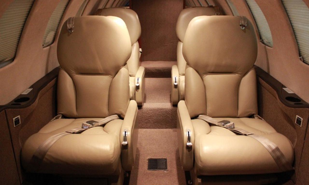 Citation Bravo N447SF accommodates up to 9 passengers. The baggage compartment volume of 2.07 m³ can hold up to 6 large suitcases . The maximum flight range reaches 3720 km, depending on payload and weather conditions.
