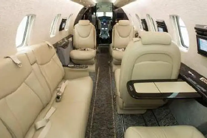 Citation Bravo S5-BSA accommodates up to 7 passengers. The baggage compartment volume of 2.07 m³ can hold up to 6 large suitcases . The maximum flight range reaches 3720 km, depending on payload and weather conditions.
