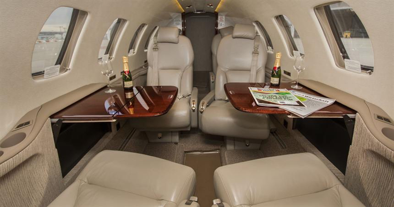 Citation Bravo SP-KLN accommodates up to 7 passengers. The baggage compartment volume of 2.07 m³ can hold up to 6 large suitcases . The maximum flight range reaches 3720 km, depending on payload and weather conditions.