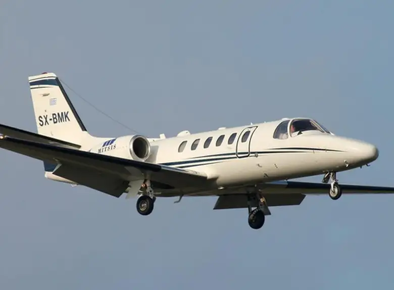 Cessna Aircraft Citation Bravo SX-BMK (IFLY S.A.), Athens Eleftherios Venizelos International Airport is premium Light Jet jet for 7 passengers with a range of 3720 km. verified aircraft, transparent pricing, real photos and signature JETVIP ratings. Model ratings: Reliability — 73/100, Comfort — 75/100, Popularity — 3.3/5.