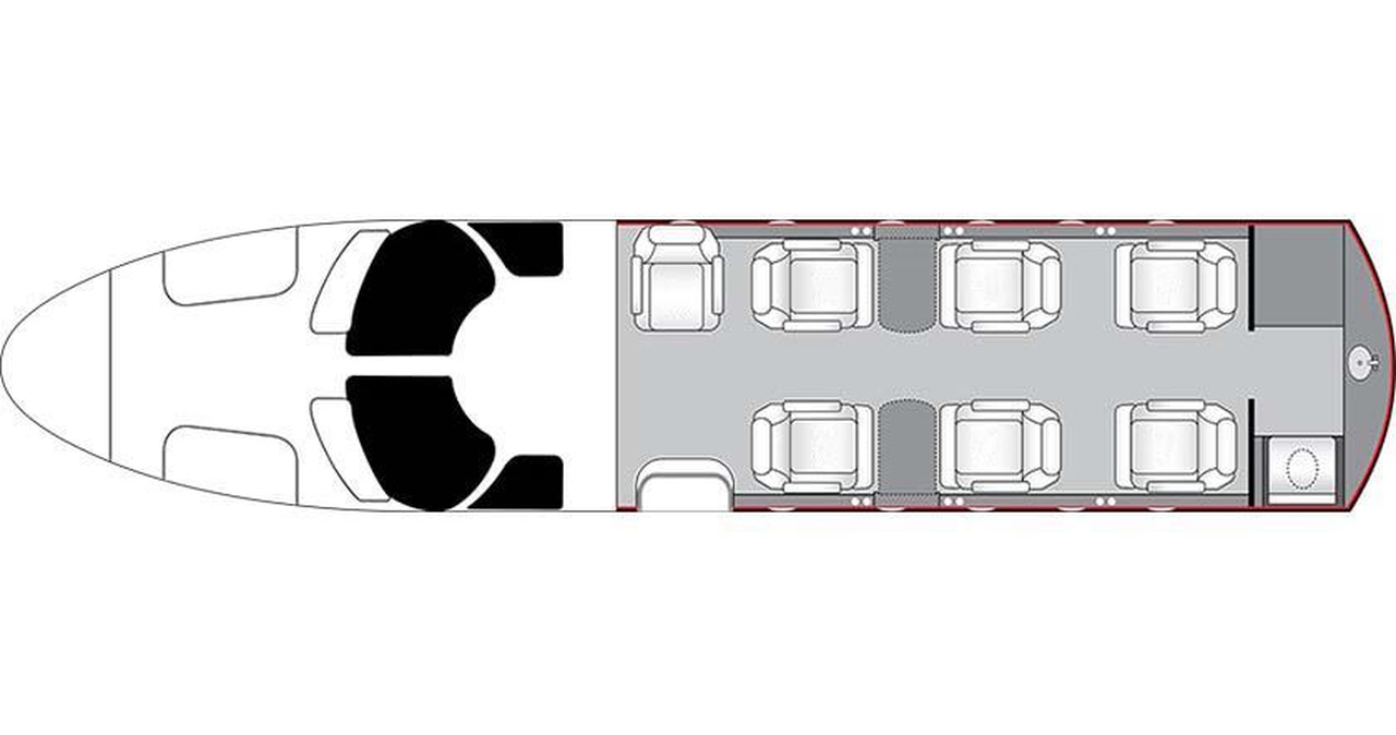 Citation Bravo TC-MKA accommodates up to 7 passengers. The baggage compartment volume of 2.07 m³ can hold up to 6 large suitcases . The maximum flight range reaches 3720 km, depending on payload and weather conditions.