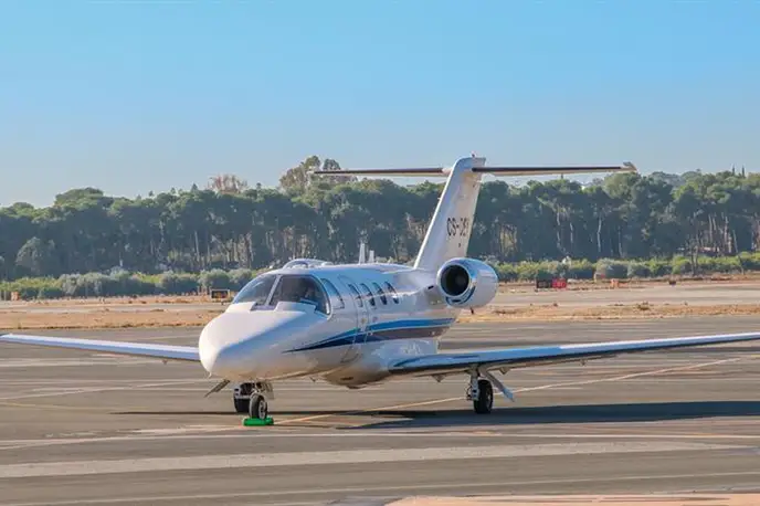 Cessna Aircraft Citation CJ1 CS-DEY (IJet Aviation), Málaga-Costa del Sol Airport is premium Entry Level Jet jet for 5 passengers with a range of 2730 km. verified aircraft, transparent pricing, real photos and signature JETVIP ratings. Model ratings: Reliability — 76/100, Comfort — 74/100, Popularity — 3.5/5.