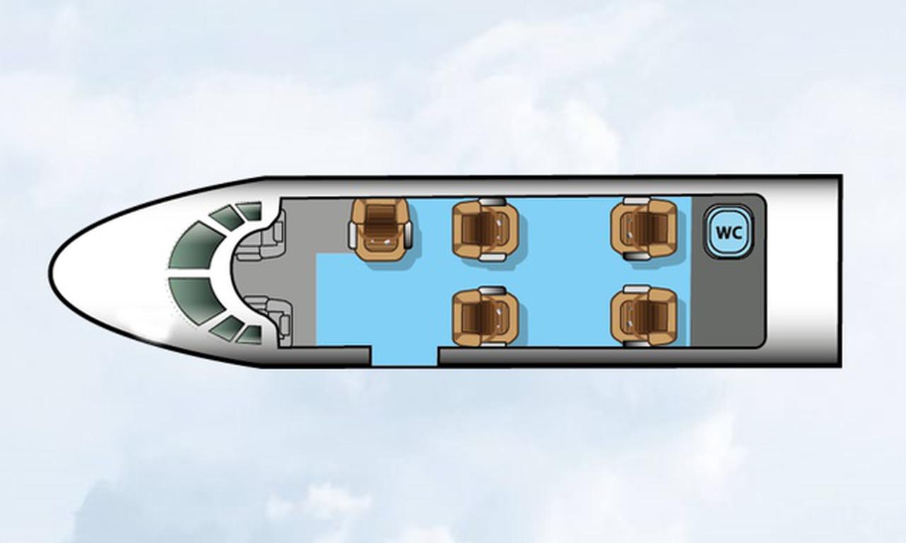 Citation CJ1 OE-FLI accommodates up to 6 passengers. The baggage compartment volume of 1.6 m³ can hold up to 4 large suitcases . The maximum flight range reaches 2730 km, depending on payload and weather conditions.