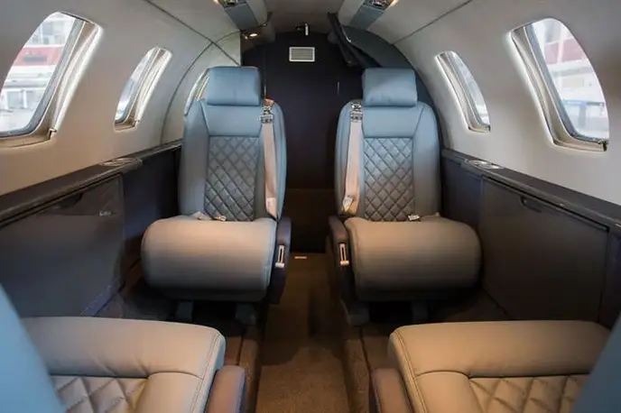 Citation CJ1 S5-CCD accommodates up to 4 passengers. The baggage compartment volume of 1.6 m³ can hold up to 4 large suitcases . The maximum flight range reaches 2730 km, depending on payload and weather conditions.