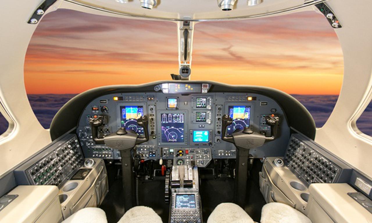 The aircraft is powered by 2 FJ44-3A engines with an average fuel burn of 220 gallons per hour , ensuring efficiency and reliability on long-distance routes.