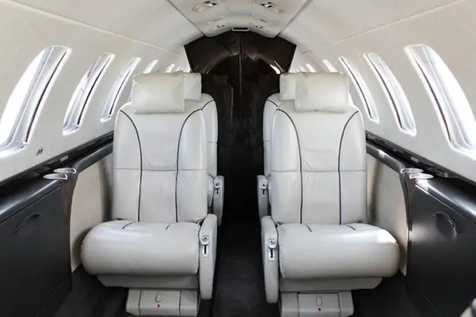 Citation CJ3+ N7SG accommodates up to 7 passengers. The baggage compartment volume of 1.84 m³ can hold up to 5 large suitcases . The maximum flight range reaches 3778 km, depending on payload and weather conditions.