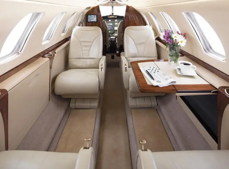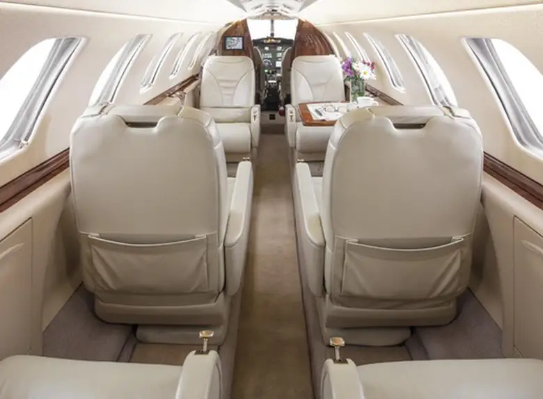 Citation CJ3+ N83TF accommodates up to 7 passengers. The baggage compartment volume of 1.84 m³ can hold up to 5 large suitcases . The maximum flight range reaches 3778 km, depending on payload and weather conditions.