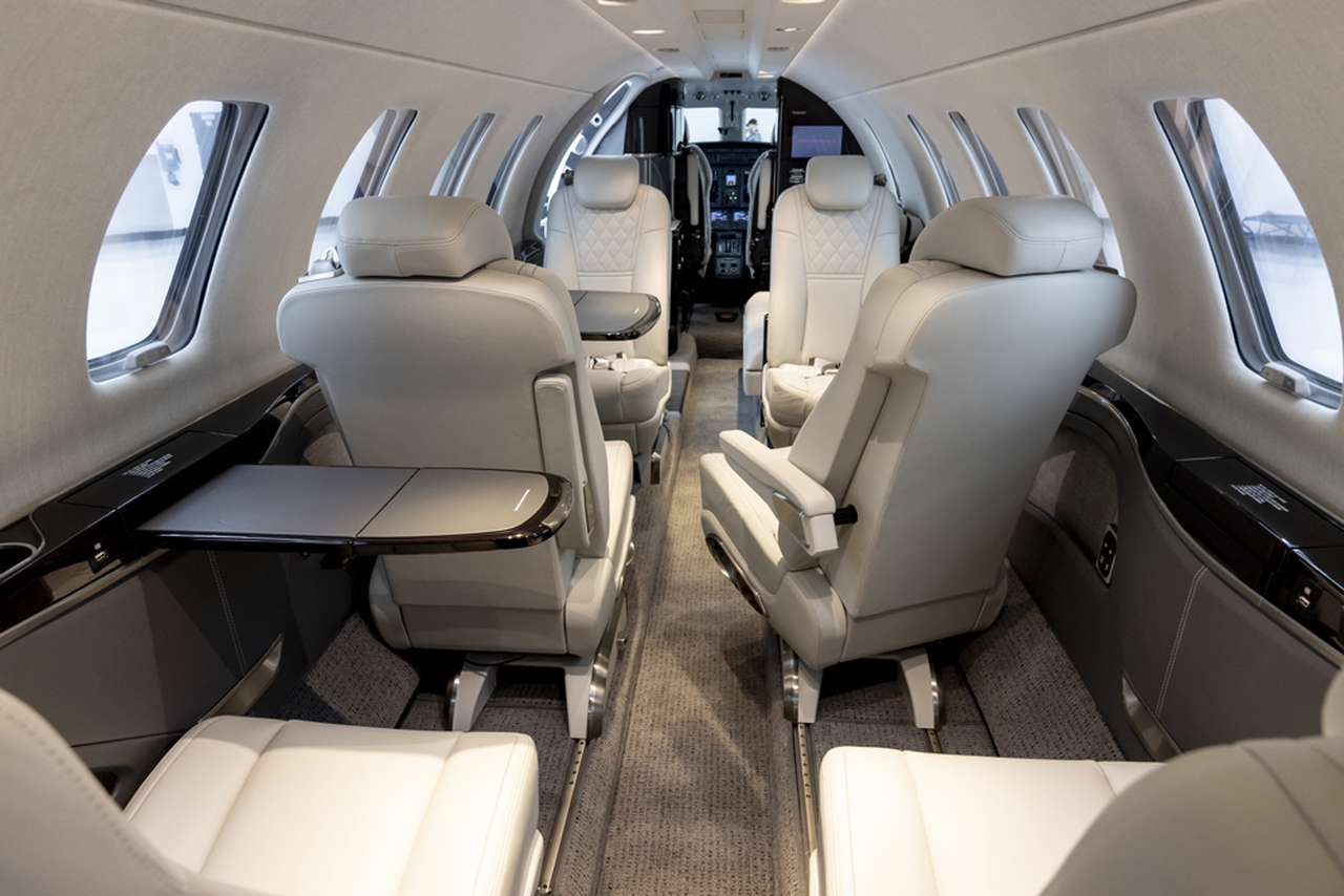 The aircraft is powered by 2 Williams International FJ44-4A engines , ensuring efficiency and reliability on long-distance routes.