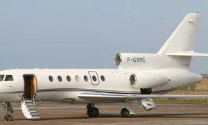 The aircraft is powered by 2 General Electric CF700-2D-2 engines , ensuring efficiency and reliability on long-distance routes.