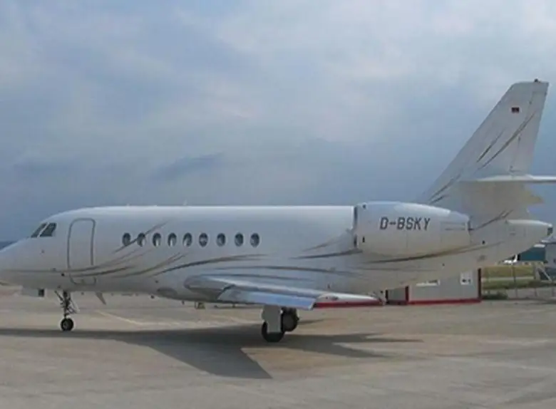 Dassault Aviation Falcon 2000EX EASy D-BSKY is premium Heavy Jet jet for 9 passengers with a range of 5750 km. JETVIP offers charter from 6000 €: verified aircraft, transparent pricing, real photos and signature JETVIP ratings. Model ratings: Reliability — 91/100, Comfort — 88/100, Popularity — 4.2/5.