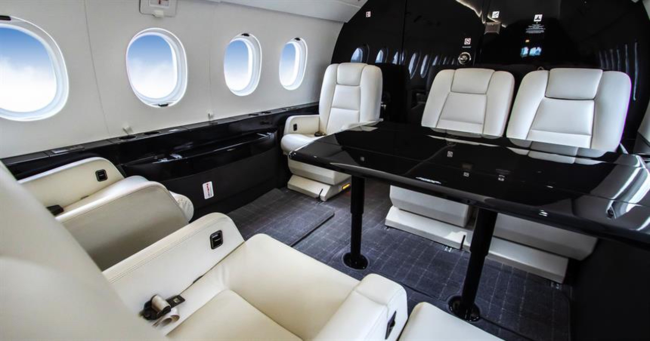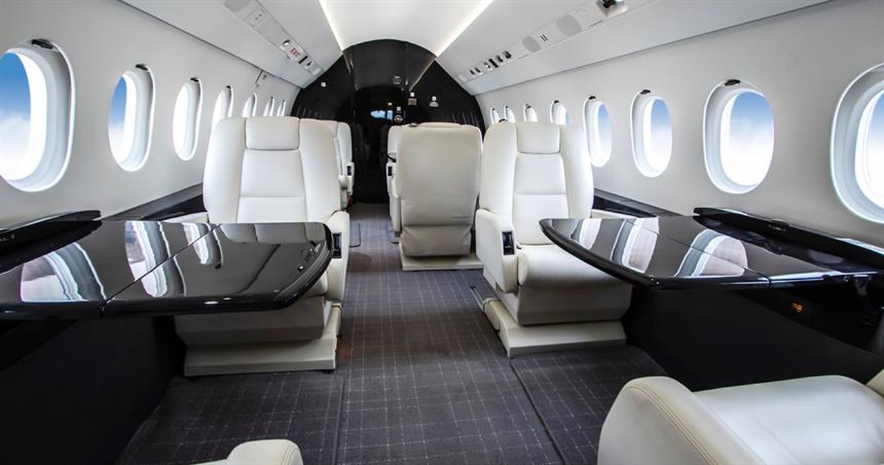 Falcon 2000EX EASy N323SE accommodates up to 10 passengers. The baggage compartment volume of 3.7 m³ can hold up to 11 large suitcases . The maximum flight range reaches 5750 km, depending on payload and weather conditions.